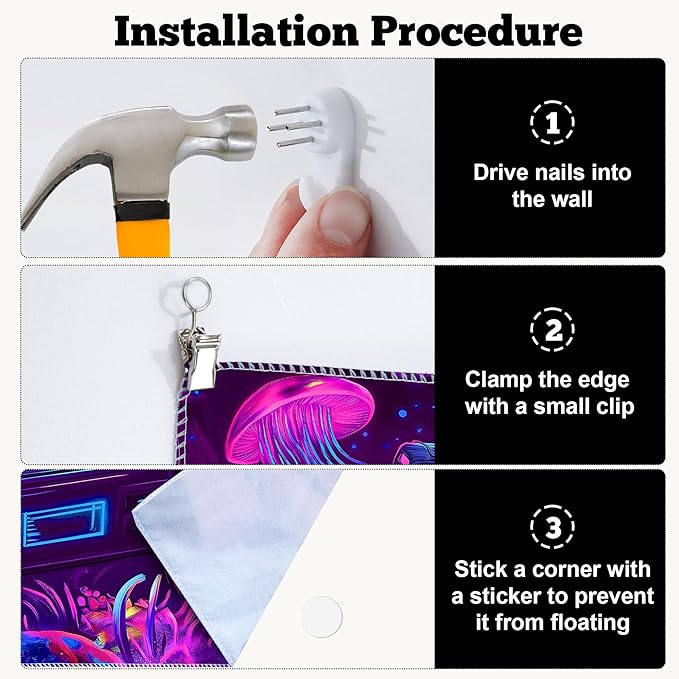 - Versatile Tapestry - With its durable materials and unique design, this blacklight tapestry can serve as a wall hanging tapestry, indie room tapestry, curtain tapestry, dorm room tapestry, ceiling tapestry, bedroom tapestry, glow-in-the-dark artwork or even a picnic blanket.