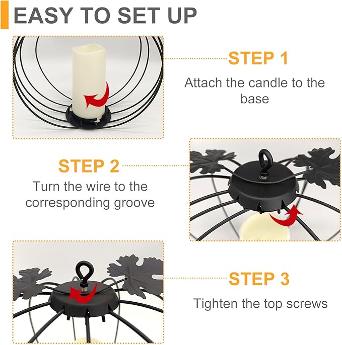 - Easy to Assemble: No tool is required, just attach the candles to the bases, and turn metal wire to the groove, then tighten the top screw. Place pumpkin lights in indoor or covered outdoor location to create a inviting and solemn space for your festivals