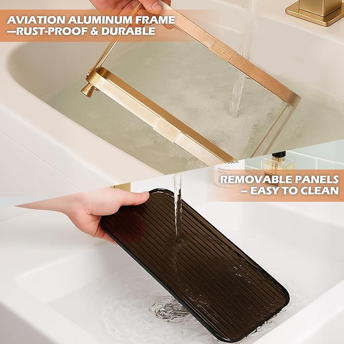 - Sturdy and Durable - the widened and thickened frame is made of aviation aluminum, which is stronger and lighter than standard metal, YUPER bathroom counter organizer Features waterproof, rust-proof and corrosion-resistant, the heightened and thickened feet are non-slip and silent, and the PET panel is strong and durable and not easy to break