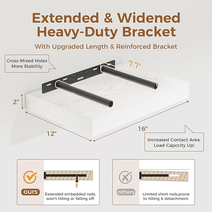 - Special Feature : 12 Inch Deep, 2 Inch Thick, Invisible Heavy-Duty Bracket, Large Storage & Display Space, Wall Mounted Shelves 12 Inch Deep, 2 Inch Thick, Invisible Heavy-Duty Bracket, Large Storage & Display Space, Wall Mounted Shelves
