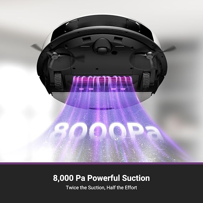 - Powerful 8000Pa Suction: Effectively captures dust, debris, and pet hair from carpets and hard floors, ensuring a thorough clean.
