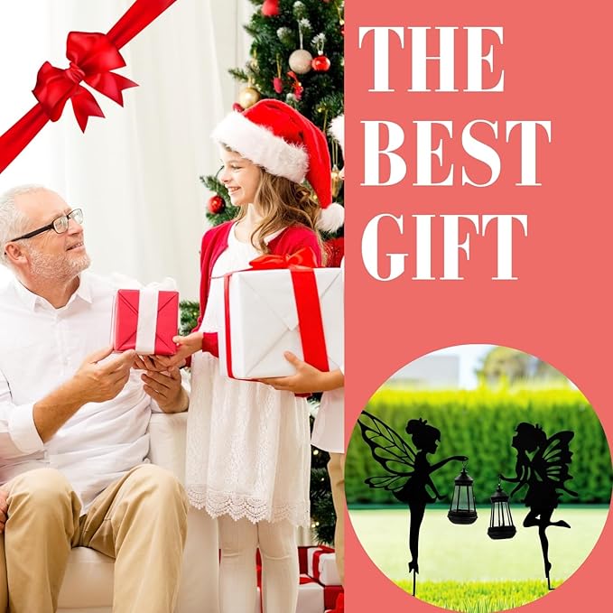 - Charming Fairy Garden Stakes – This set includes two fairy-themed statues with garden stakes, each featuring a graceful, cut-out fairy design holding a sun lantern. These delightful figures bring a magical, storybook touch to your garden or yard.