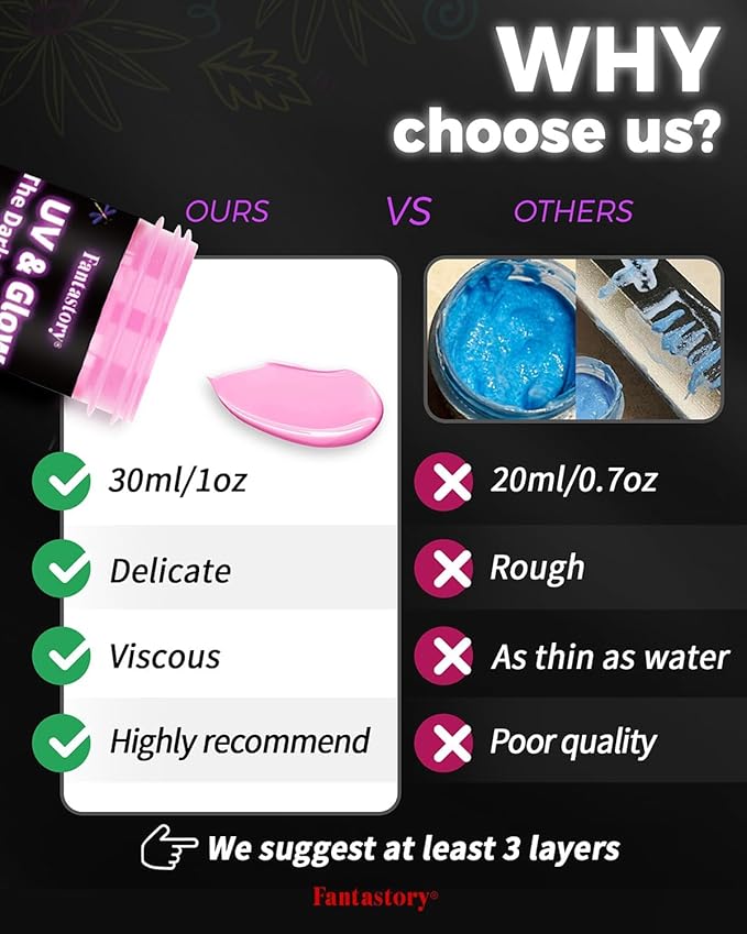 - High Quality: Fantastory glow in dark paint is AST.M certified. Its good viscosity, exceptional smoothness, and glossiness offer a delightful way to explore the magic of art. Overall, this essential glow paint set will greatly unleash your imagination.