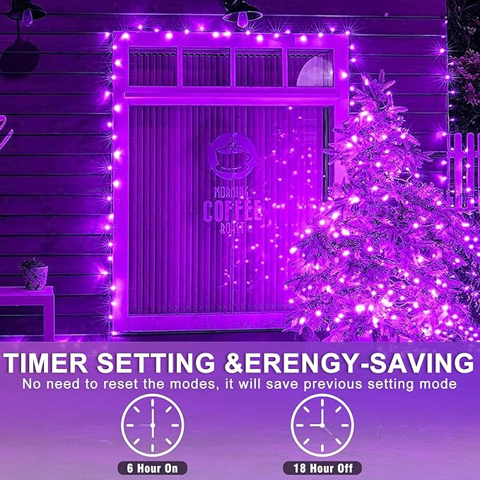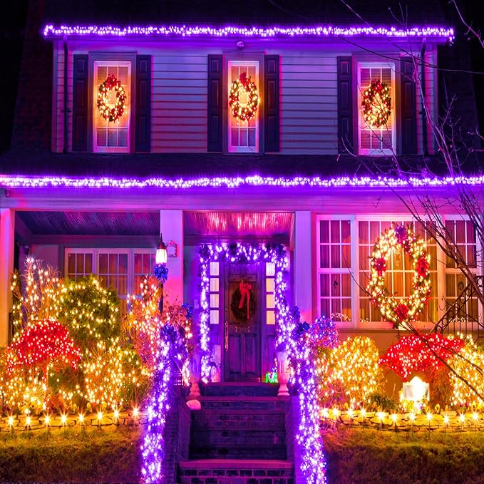 - Waterproof Halloween Lights: The purple Christmas lights design with IP44 outdoor waterproof, can withstand wind, snow, rain and extreme weather. String lights are equipped with a UL certified 29V low-voltage plug ensures the safety. It's safe for family with kids or pets!