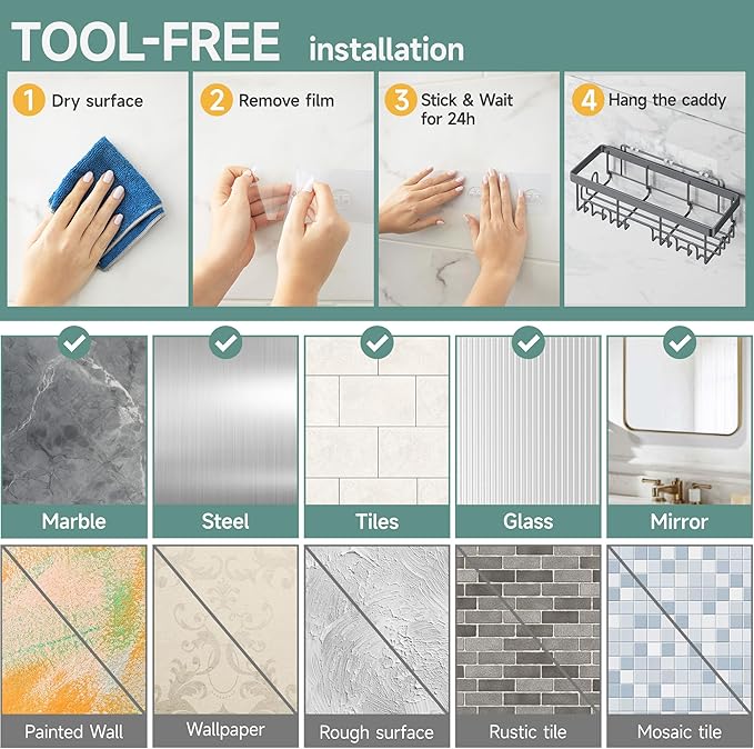 - Versatile for Family Use: Perfect for family bathrooms, this set adapts to various needs, making it easy to organize shampoos, soaps, and more; enhancing shower convenience for everyone