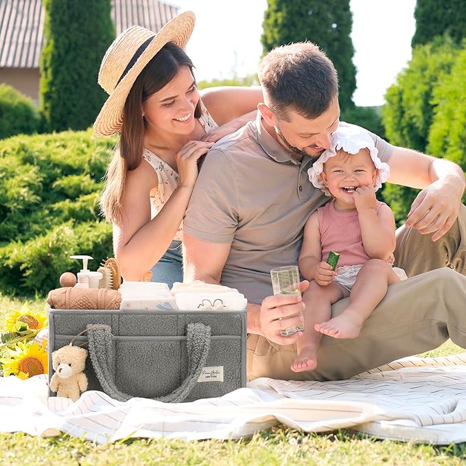 - BONUS TEDDY BEAR CHARM AND LUXURIOUS PLUSH SHERPA EXTERIOR : Crafted with a premium plush sherpa exterior, our Baby Diaper Caddy feels as cozy as it looks. Each caddy comes with an adorable teddy bear charm, adding a touch of delight. It's a small detail that makes a big impression, perfect for gifting