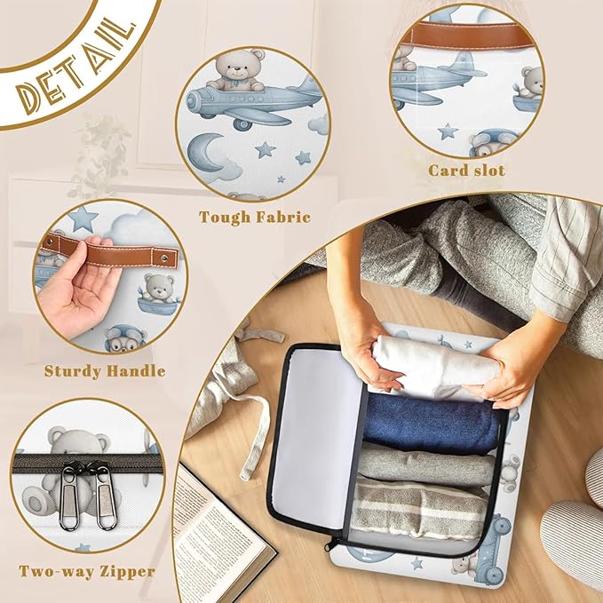 Rectangular Storage Baskets for Shelves - Waterproof Foldable Laundry Basket, Nursery Hamper, Reusable Toy Bin for Organizing Toys, Books, Clothes, Closet 14"x10.2" x10.4" (Little Bear)