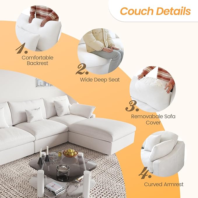 JACH L-Shaped Sectional Couches for Living Room, Cloud Sectional Couch with Deep Seat, Modular Sectional Sofa with Chaise, Covers Removeable & Washable, Sofas Furniture for Living Room, White
