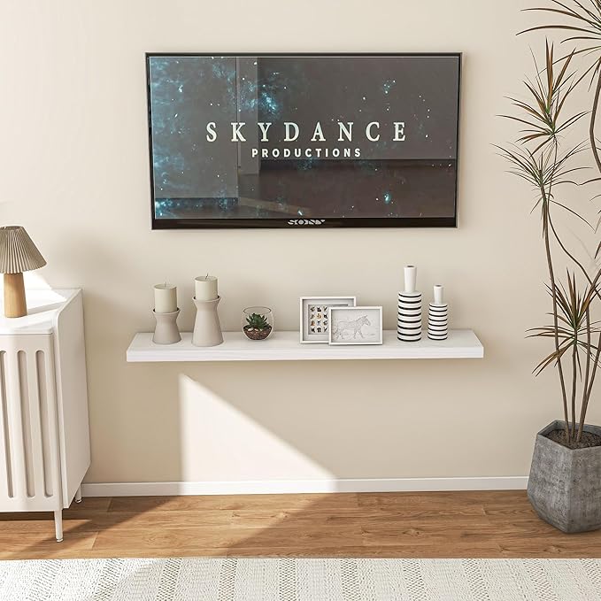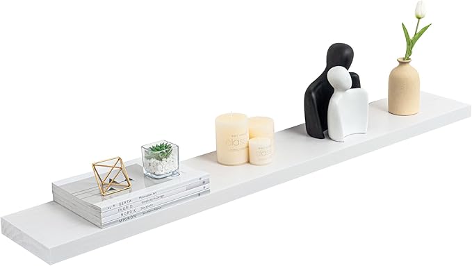 - Extra Deeper & Thicker for Storage - Each board measures 48"W x 8"D x 1.4"H. Extra deeper and thicker design in order to bring maximizes storage space and weight capacity, even hold up to 60 lb. This floating shelf taking up zero square feet, reduces clutter and highlights décor in compact spaces. It can help make full use of the empty wall, making it much more space-saving and making your room look larger and tidier.