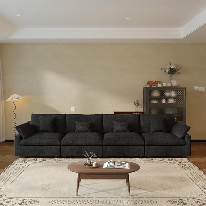 JACH Sectional Couches for Living Room, 4 Seater Cloud Sectional Couch with Deep Seat, Down Filled Modular Sofa, Covers Removeable & Washable, Sofas Furniture for Living Room, Black