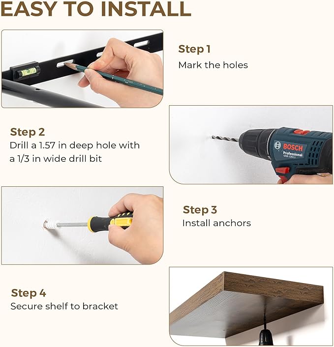 - Sturdy & Secure design: These 32-inch floating shelves feature a durable, concealed mounting bracket that offers reliable support for your belongings. Engineered for hassle-free and stable installation, each shelf includes all the required hardware to ensure a strong, wobble-free hold—perfect for showcasing your favorite decor, photos, or everyday items with confidence and style.