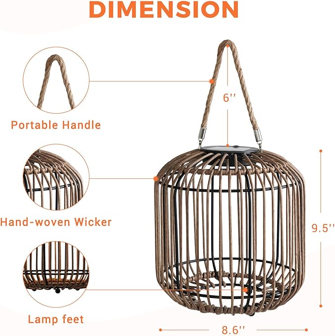 - LOW-MAINTENANCE: Constructed with a powder-coated steel and weather-resistant wicker, this lights withstands IP54-rated rain, wind, and sun exposure. Non-slip base ensures stability guarantee lasting beauty season after season