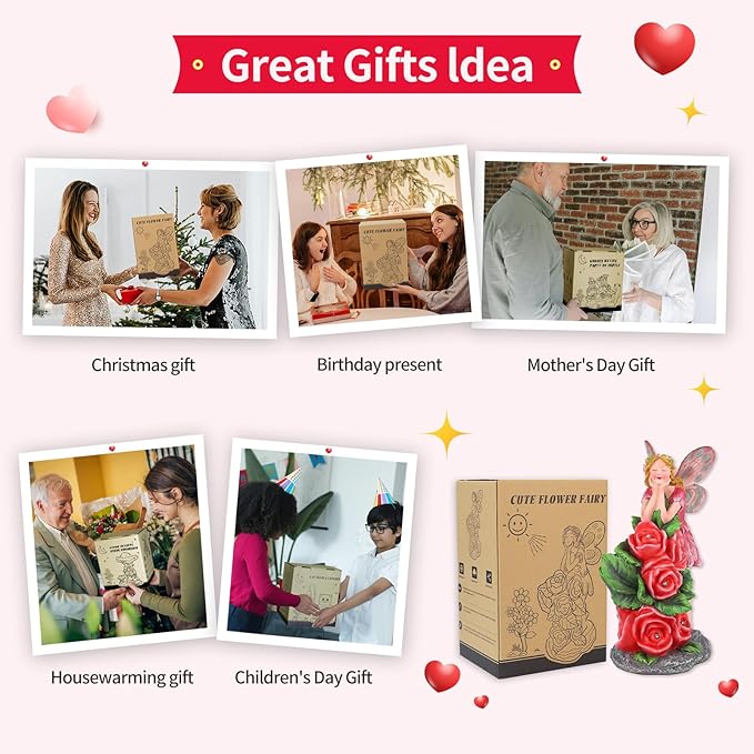 - Great Gift For Any Occasion: The uniquely designed solar powered "Cute Flower Fairy" statue is not only the best gift for birthdays, Christmas, Mother's Day, Father's Day, New Year, Thanksgiving, Easter, Valentine's Day, but also the best gift for any occasion. It can be given to Flower Fairy lovers, gardening enthusiasts, lovers, husbands, wives, mothers, fathers, sons, and daughters.