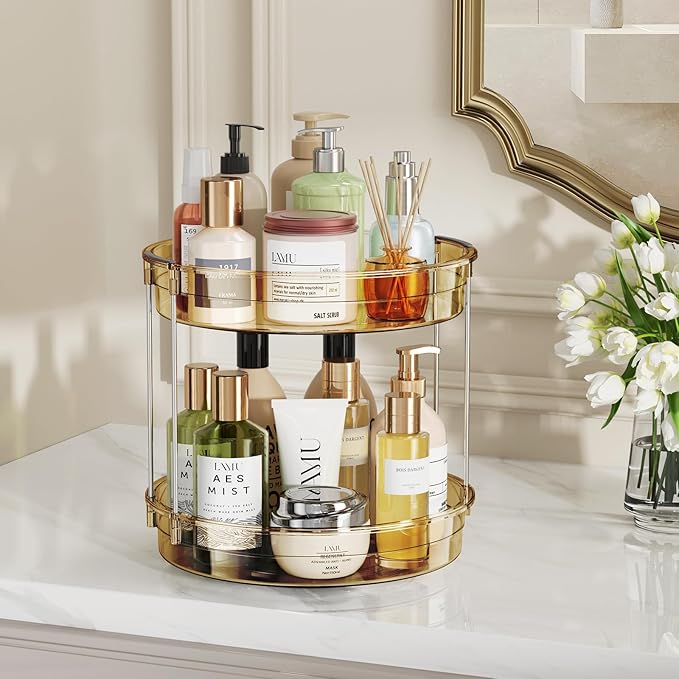 LAMU 2 Pack 2 Tier Lazy Susan Turntable Organizer 12'' Rotating Spice Rack Organization for Cabinet, Kitchen, Pantry, Countertop, Bathroom, Vanity, Medicine Cabinet Organizer, Amber