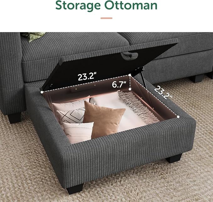HONBAY Corduroy Modular Sectional Couch with Storage L-Shaped Sectional Couches for Living Room 6 Seater Modular Sofa, Dark Gray