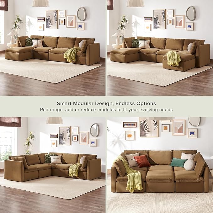 mopio Oversized Modular Sectional Sofa with Fully Removable Covers and Storage, Convertible U, L-Shaped and Sleeper Sectional, Modern Couches with Ottoman Chaise (Hazelnut Velvet, 5 Seats, L)
