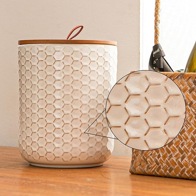 - Simple to Maintain, Built to Last - The canisters’ smooth glazed white ceramic finish makes them simple to clean—just wipe or place in the dishwasher. Hand washing is recommended for the bamboo lids to extend their durability and maintain their snug fit.