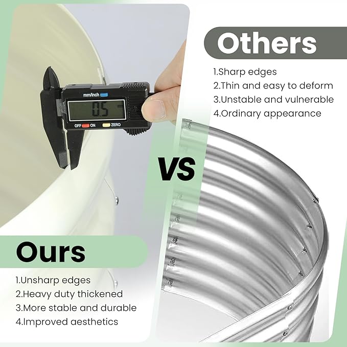 - ๐ณ Unmatched Stability: Crafted with 0.5mm thick overlapping galvanized panels, reaching up to 1.8mm at the seams, our raised garden bed provides excellent strength and stability. The integrated screw fastening edge and unique oval form ensure it remains solid and secure, even when fully planted.