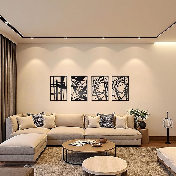 - COORDINATED SET FOR MAXIMUM IMPACT – Four complementary panels work seamlessly to create a cohesive metal wall art for living room displays or distributed accents throughout your home