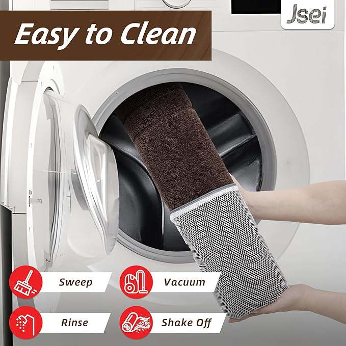 - Easy to Clean: The stain- and fade-resistant polyester surface vacuums easily. For deeper cleaning, machine wash cold with mild detergent, then tumble dry on low. Avoid bleach and fabric softener—our floor mat stays vibrant wash after wash