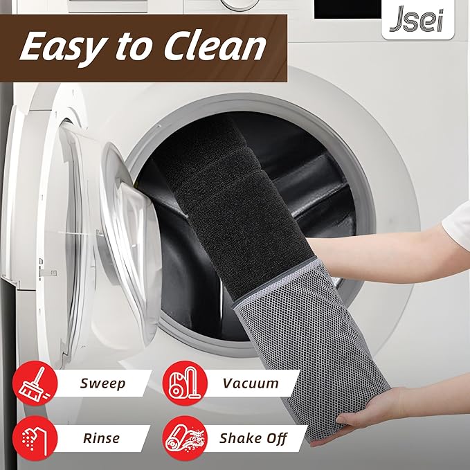 - Easy to Clean: The stain- and fade-resistant polyester surface vacuums easily. For deeper cleaning, machine wash cold with mild detergent, then tumble dry on low. Avoid bleach and fabric softener—our floor mat stays vibrant wash after wash