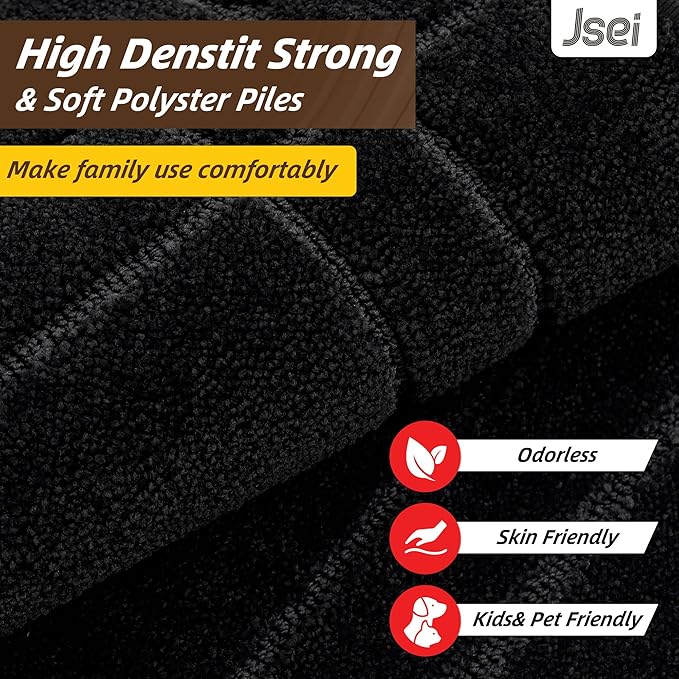 JSEI Entryway Rugs Doormat 24"x36", Non-Slip Dirt Trapper Door Mats Indoor, Washable Absorbent and Stain Resist Welcome Floor Mat for Front Door, Dog Door Mat, Muddy Wet Shoes & Paws, Black