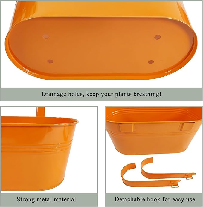 - Detachable Hook & Drainage Hole: The removable hook makes it easy to hang on deck railings, fences, or windows. The drainage hole prevents overwatering, keeping plants healthy. Great for patio planters, herb gardens, or succulents—indoors or outdoors