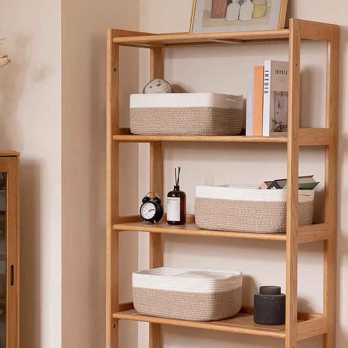 - Soft and Durable: Our shelf basket is hand-stitched from high-quality natural cotton rope that's ultra soft, durable, and baby-friendly, with no odor or sharp edges. Great for nurseries and closet organization. Seamless design, not easy to tear
