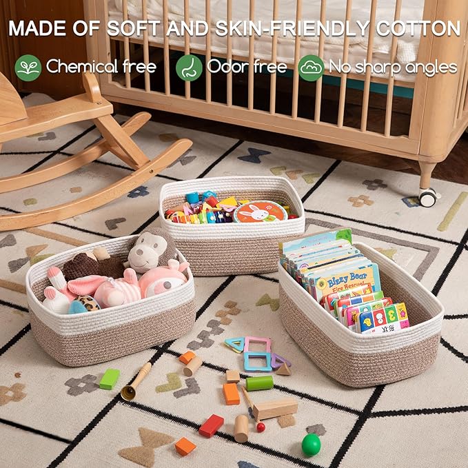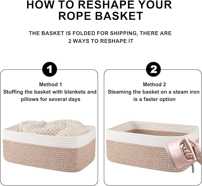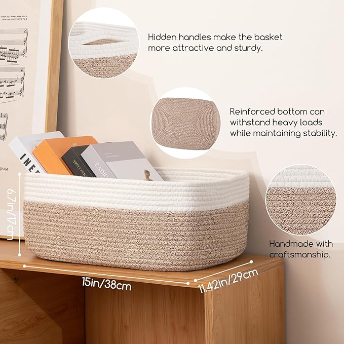 - Flexible and User-friendly: Rectangle rope basket with foldable design and separate built-in handles for easy portability and stoarge. The woven basket handle is comfortable to the touch, they are very practical and suitable for children to pick up toys or carrying items around the house
