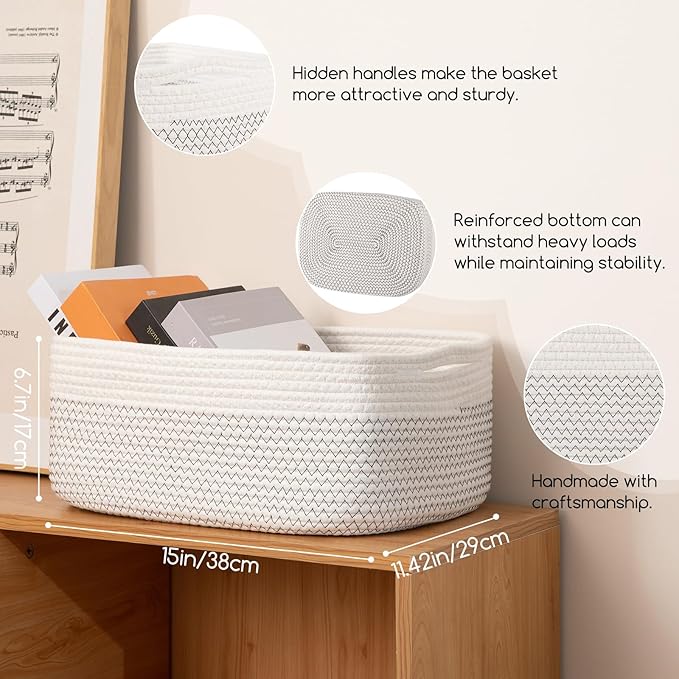 - Flexible and User-friendly: Rectangle rope basket with foldable design and separate built-in handles for easy portability and stoarge. The woven basket handle is comfortable to the touch, they are very practical and suitable for children to pick up toys or carrying items around the house