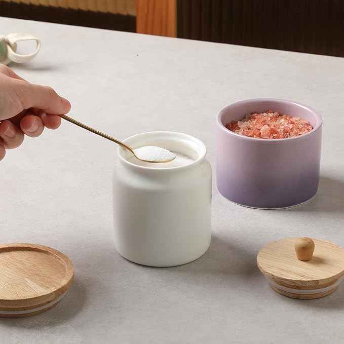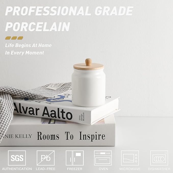 - Beautiful and Practical - You will fall in love with the unique ceramic material, the environmentally friendly and healthy wooden lid, and the rubber ring can form an airtight seal to keep the contents fresh and dry.