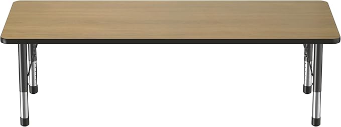 Factory Direct Partners FDP Rectangle (30 x 72 inch) Classroom Table with Adjustable Chunky Toddler Legs (15-24 in); Preschool, Kinder and Daycare Furniture - Pasadena Oak Top/Black Edge and Legs