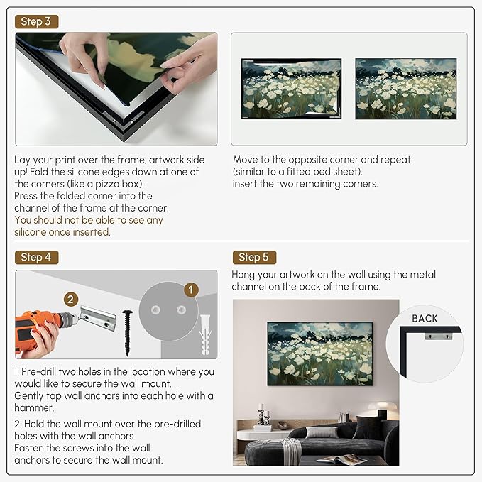 - Assembly Required: The artwork comes with the frame components unassembled. Don¡¯t worry ¡ª setup is straightforward and tool-friendly. For best results and accurate alignment, we recommend two people to ensure a smooth assembly and a stable, secure wall mount.