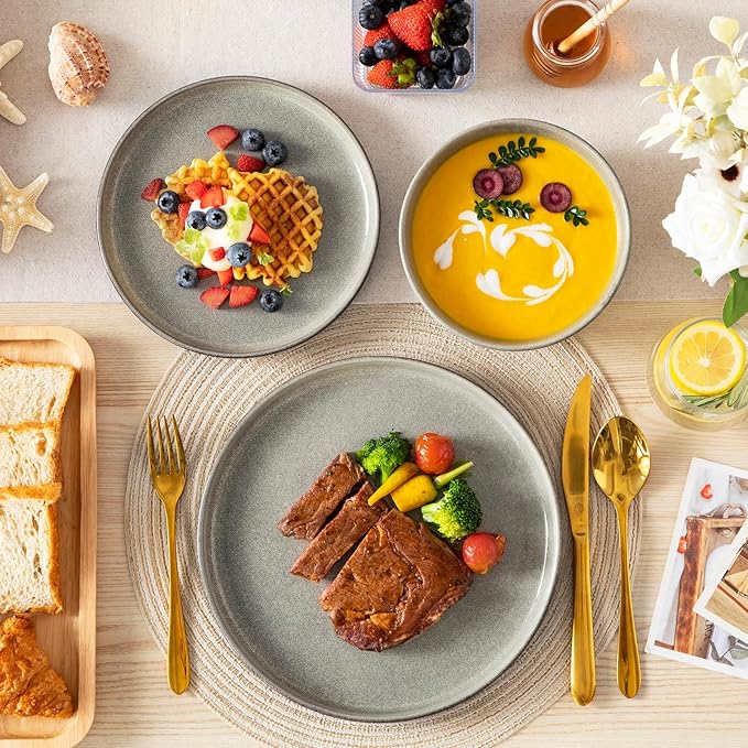 - 【Durable & Scratch-Resistant Stoneware】Made from high-fired stoneware, this set is strong, chip-resistant, and built to last. It resists wear and tear from daily use while maintaining its elegant appearance over time.