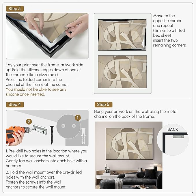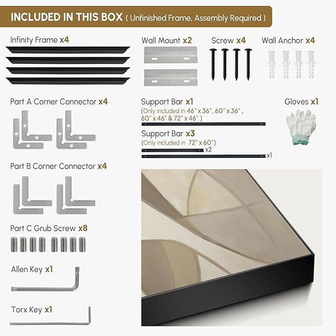 - Assembly Required: The artwork comes with the frame components unassembled. Don’t worry — setup is straightforward and tool-friendly. For best results and accurate alignment, we recommend two people to ensure a smooth assembly and a stable, secure wall mount.