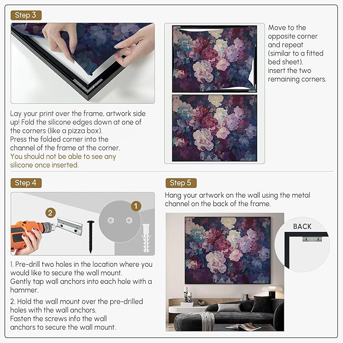 - Assembly Required: The artwork comes with the frame components unassembled. Don’t worry — setup is straightforward and tool-friendly. For best results and accurate alignment, we recommend two people to ensure a smooth assembly and a stable, secure wall mount.
