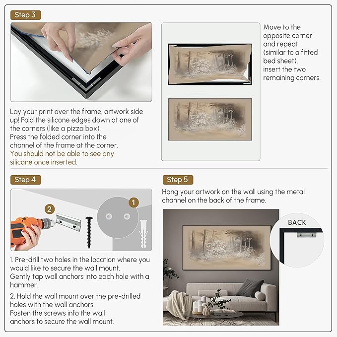 - Assembly Required: The artwork comes with the frame components unassembled. Don’t worry — setup is straightforward and tool-friendly. For best results and accurate alignment, we recommend two people to ensure a smooth assembly and a stable, secure wall mount.