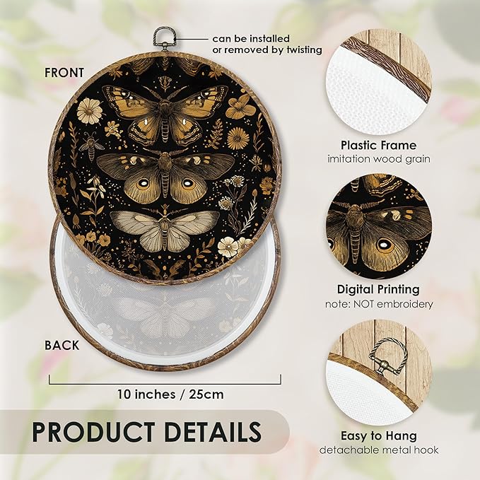 - Premium Material: Crafted with textile canvas and high-quality digital printing (not embroidery), stretched over a round plastic frame with a wood-like finish that resists bending or warping.