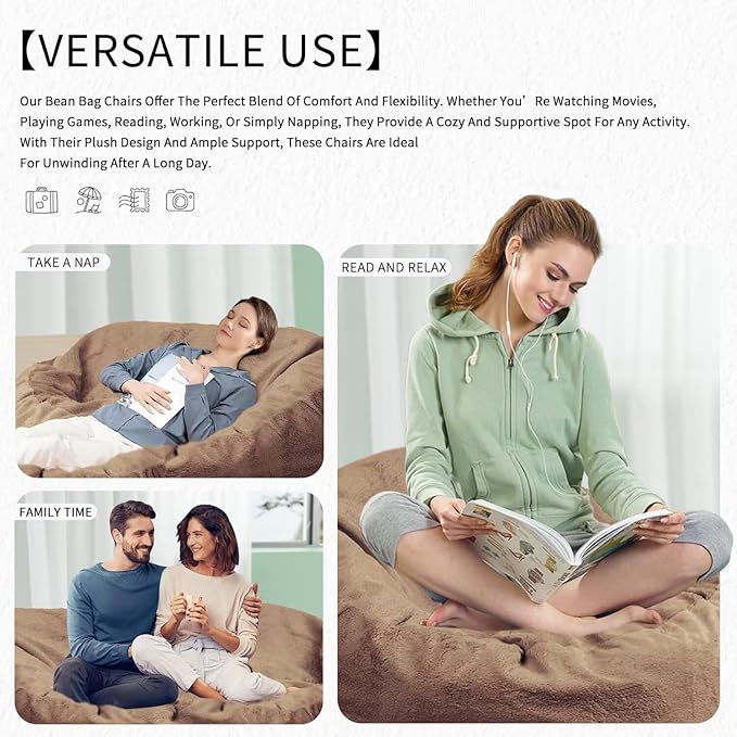 - 【Versatile Use】Our Bean Bag Chairs Offer The Perfect Blend Of Comfort And Flexibility. Whether You’Re Watching Movies, Playing Games, Reading, Working, Or Simply Napping, They Provide A Cozy And Supportive Spot For Any Activity. With Their Plush Design And Ample Support, These Chairs Are Ideal For Unwinding After A Long Day.
