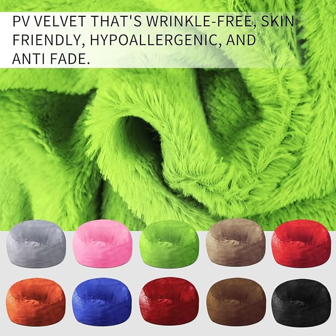 - 【Comfy,Durable,And Easy To Care】Our Giant Bean Bag Cover Is Made Of Super Soft, Furry Pv Velvet That'S Wrinkle-Free, Skin Friendly, Hypoallergenic, And Anti Fade. It Features Double-Stitched Seams And A Two Layer Zipper For Enhanced Durability And Long-Lasting Use.