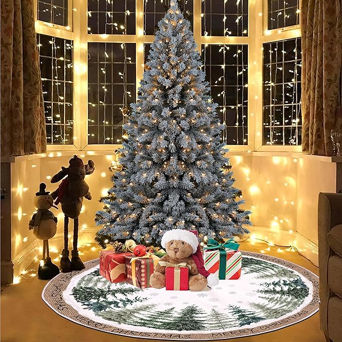 - Great for Home Decor: The Christmas tree skirt features Christmas-themed elements such as snowy forest, unique pine trees, and snowflakes, making it perfect for Christmas tree decoration. It is designed with fashionable colors and patterns that can match any Christmas tree decoration, adding more festive atmosphere to your Christmas tree and holiday decor.