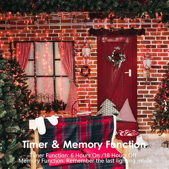 - Ultra-Bright and Durable Battery Powered String Lights: Each Christmas string light is 33 feet, features 100 super bright LEDs and a waterproof battery case with 8 lighting modes to ensure longevity and reliability. The red Halloween lights emit a classic, scary and dread atmosphere in the dark, making them an ideal choice for indoor and outdoor decorations. These fairy lights are perfect for Halloween parties, creating a horrible and spooky atmosphere.