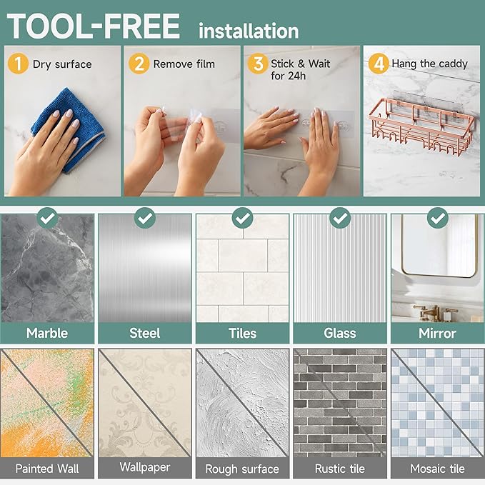 - Versatile for Family Use: Perfect for family bathrooms, this set adapts to various needs, making it easy to organize shampoos, soaps, and more; enhancing shower convenience for everyone