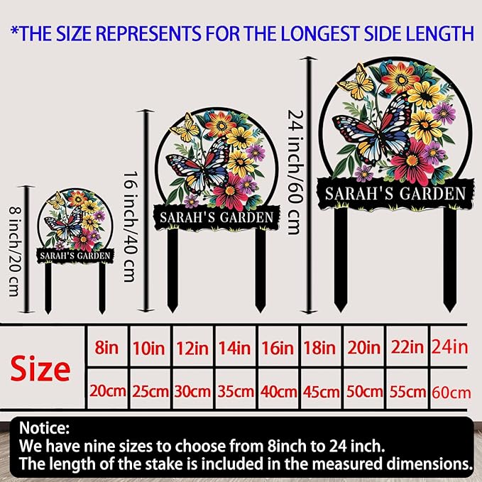 - 【Unique Gift】:The custom garden metal stake can be designed by your customized name or text. You can pour your care and love into the design, It's a wonderful gift for wedding, anniversary, birthday,move to a new house or welcome a new family member's arrival, etc.