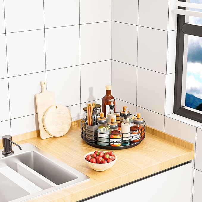 Snack Organizer - Versatile Snack Storage, Lazy Susan with Convenient Grab-and-Go Design, Metal Snack Holder for Home, Office, Breakroom, 11.85" L x 11.85" W x 4.17" H (Matte Black)