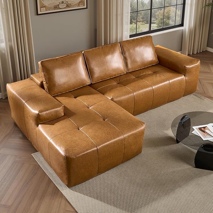 • Comfy Chaise Couch:Bask in unparalleled luxury with our interchangeable sofa collection, which embodies a spacious, cloud-like seating sensation. Revel in supreme ease with our couch with 51" lounge chaise, meticulously crafted from high resilience foam architecture and coil spring reinforcement