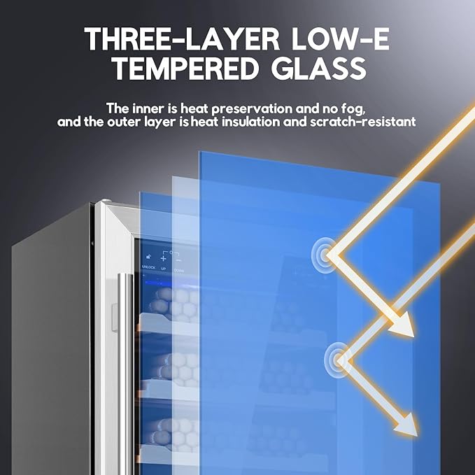 - 【Reversible Door Design & Low-E Glass】The door frame and handle of the Cigar humidor are made of stainless steel, highlighting the elegance and nobility. The reversible door design allows you to adjust the opening direction according to your preference. The Low-E composite coating between the two tempered glass panes and the microcellular high-pressure foamed insulation provide superior thermal insulation. Built-in LED blue light is convenient for you to check the cigar's status. Energy saving design, power consumption is < 0.28 kWh/24 hours, cost is < 0.06/day.