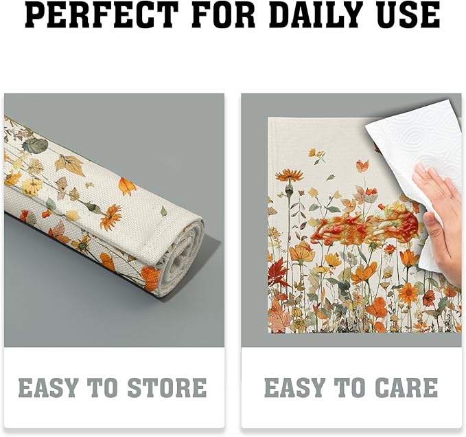 - Widely Used: Our autumn placemats are suitable for all seasons, all kinds of occasions, kitchen, restaurant, hotel, outdoor parties, etc. It's also a holiday or season ornament and a perfect gift for friends and relatives
