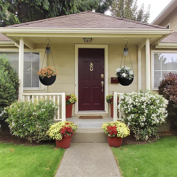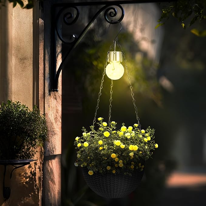 - Hanging Basket Planters: Each set includes two 28” tall hanging pots with chains and hooks-Artificial Rattan and special lighting design, the hanging sphere planters features a contemporary craft look for stylishly elevating any outdoor space