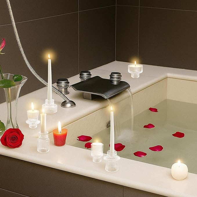 - VERSATILITY CANDLESTICK HOLDERS: Perfect as elegant table centerpieces, charming additions to your mantle display, or serene windowsill accents. These glass taper candleholders enhance ambiance for dinners, parties, or everyday relaxation. Their timeless glass crystal candle holder design seamlessly integrates into diverse settings